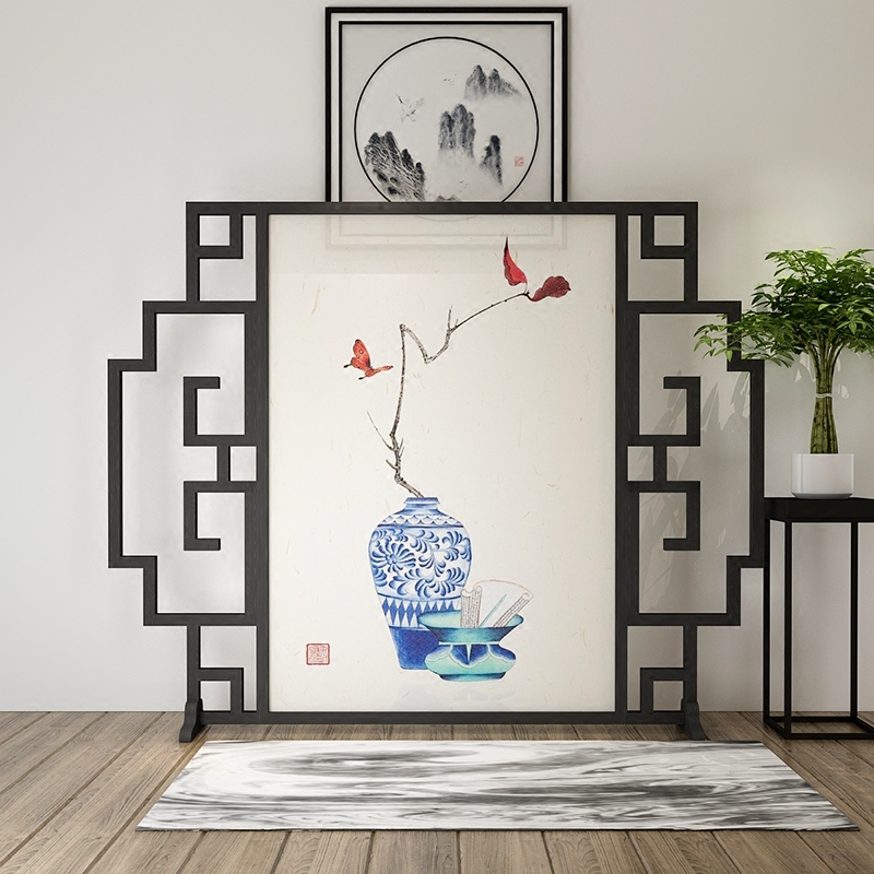 New Classical Solid Wood Screen Partition Living Room Decoration Seat Screen Dining Room Hotel Background Mobile Screen (Cloud Mirror)