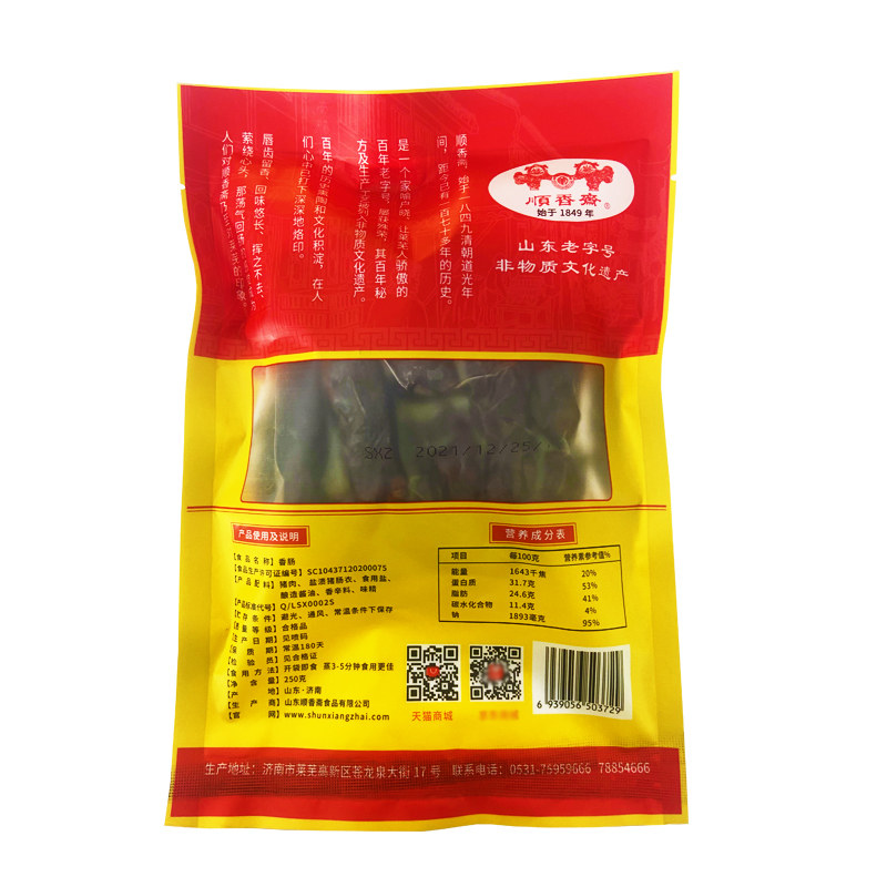 Authentic Shunxiang Sailai Barren Sausage Ready-to-eat Mouth Town South Intestines Dried Sausage 250g Shandong Teproute Packaging Pork Sausage