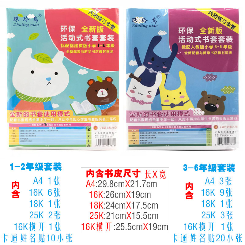 Zhu Ling Bird People Teaching Edition Elementary School Students Assorted Book Leather First Grade Second Grade Transparent Frosted Book Leather Book Cover