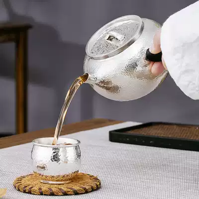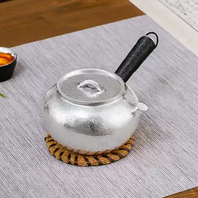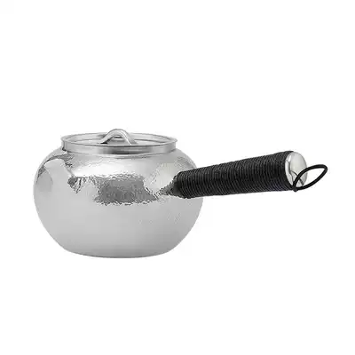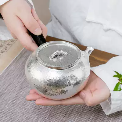 Silver age high-quality handmade hammer pattern polished sterling silver side handle pot tea pot Silver pot Kung Fu tea tea separator