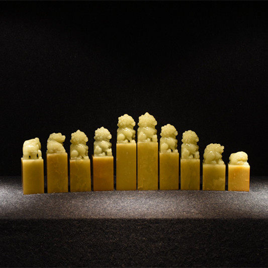 Qingtian stone Fengmen cauliflower yellow set set of 10 squares, rich yellow, water soaked yellow, simmering ice pattern, Fengmen green