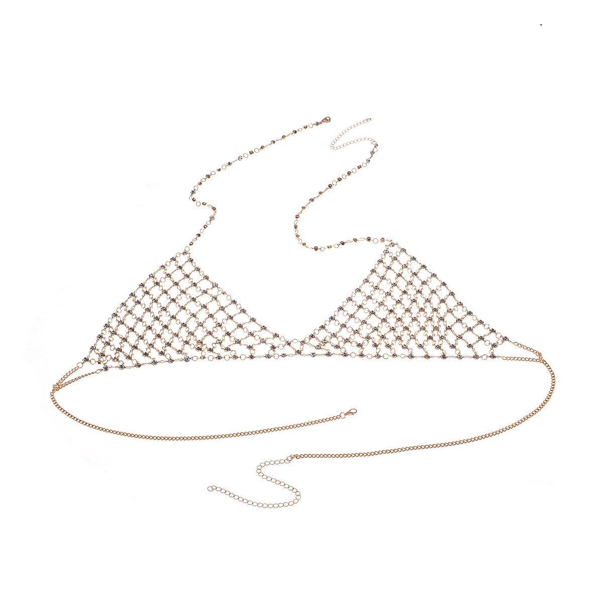 INS Europe Station Exploits Sexy hand inlaid drilling quality Chest Clothing Chain Body Chain Necklace Individuality Fashion Chest Chain