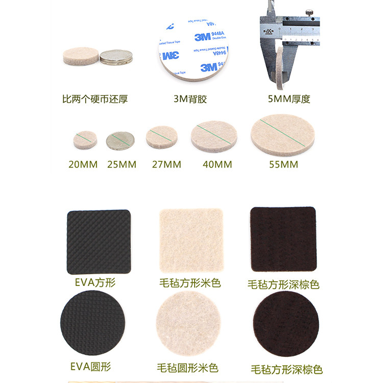 muted abrasion resistant thickened felt furniture sofa table and chair sub non-slip rubber footbed square round self-glued footbed boxed