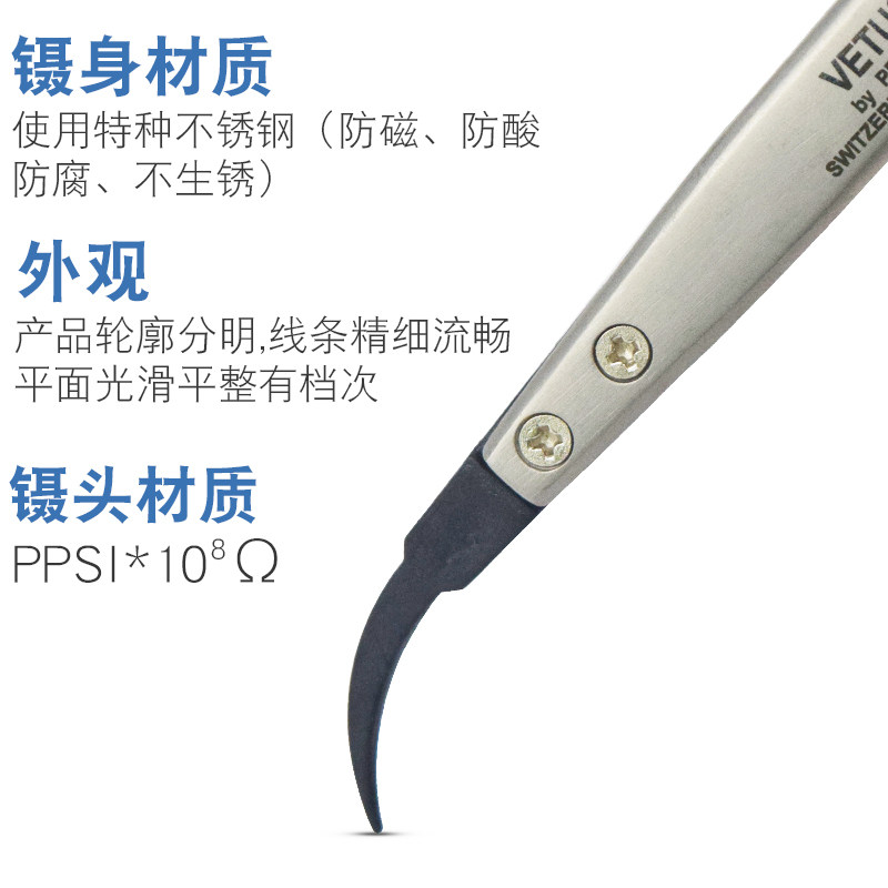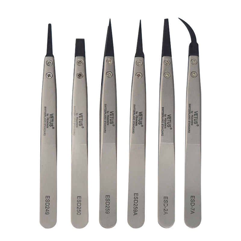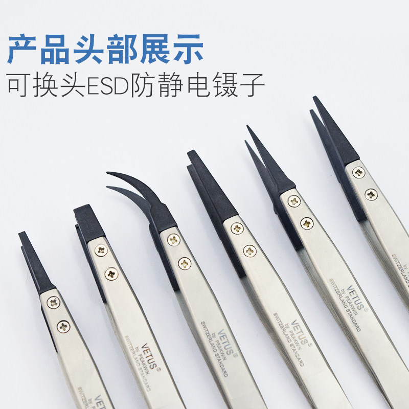 VETUS Vettes switched heads tweezers ESD carbon fiber plastic tweezers head stainless steel anti-static tweezers