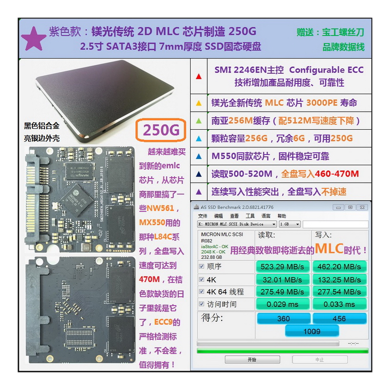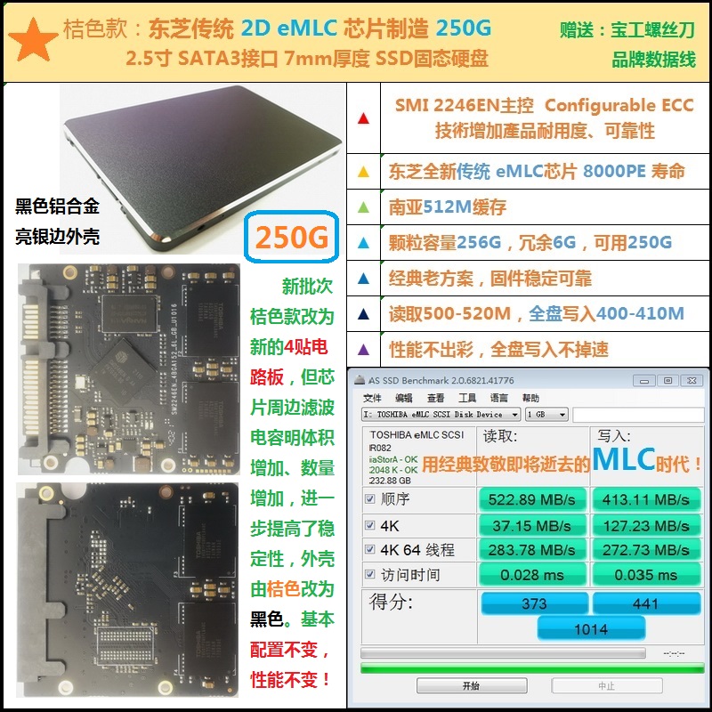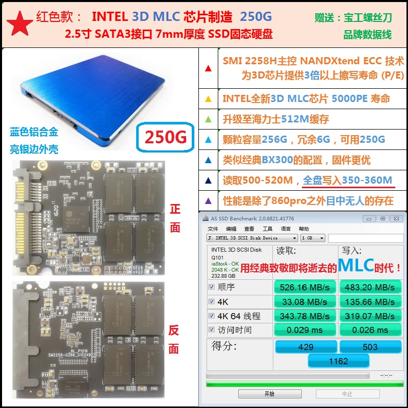 Intel 3D MLC Toshiba eMLC chip manufacturing 250G non-256G SATA3 SSD solid state drive