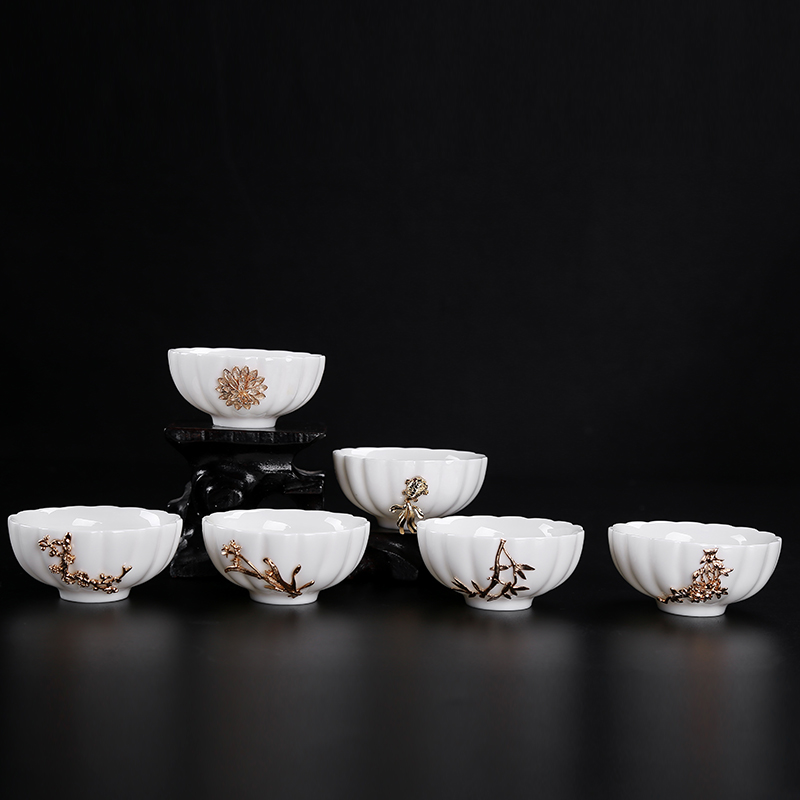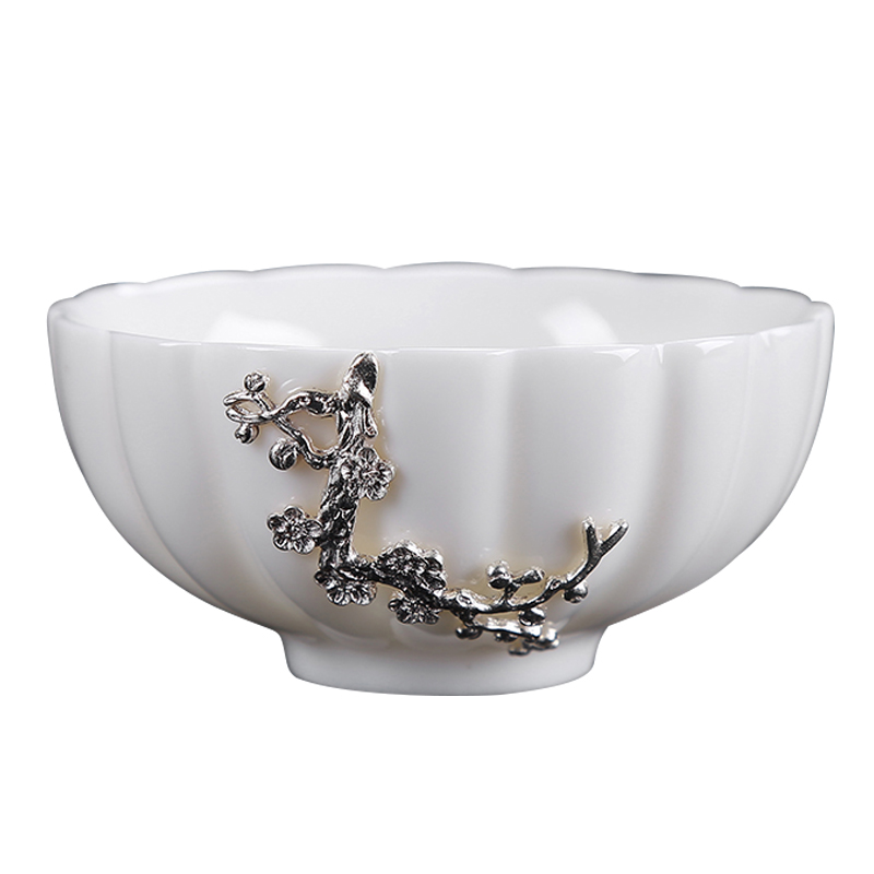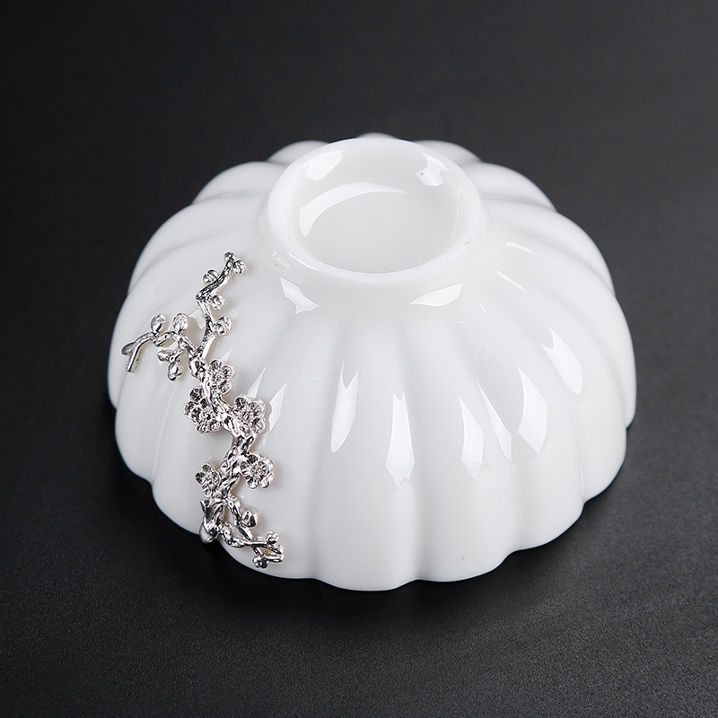 Ceramic jade porcelain single cup inlaid silver tea with master's cup Gongfu tea with building of a petals tea cup personal cup of tea drinking cup