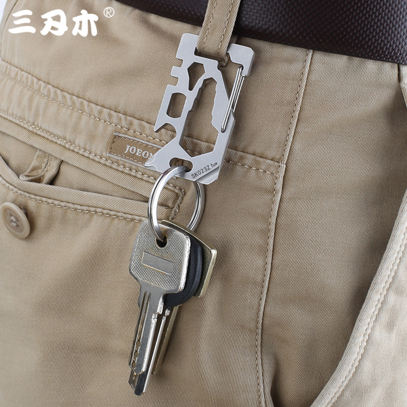 Three-edged wood multi-function keychain hanging buckle Outdoor tools Self-defense men's car bicycle motorcycle keychain keychain keychain