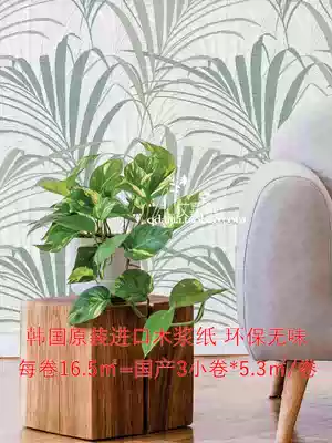 Korean pure paper wallpaper big roll Nordic minimalist American countryside pastoral light gray green leaves wallpaper background wall