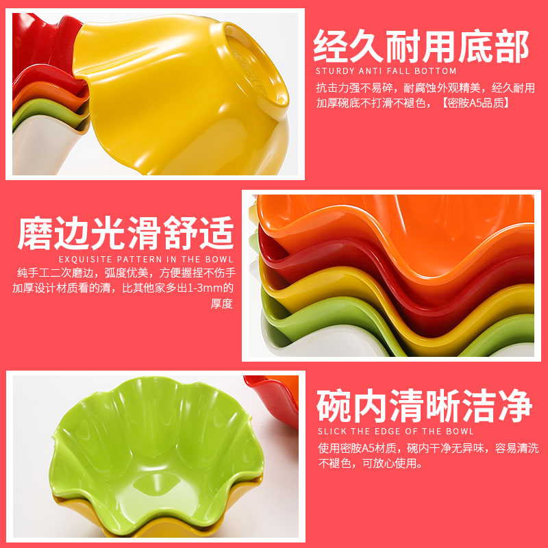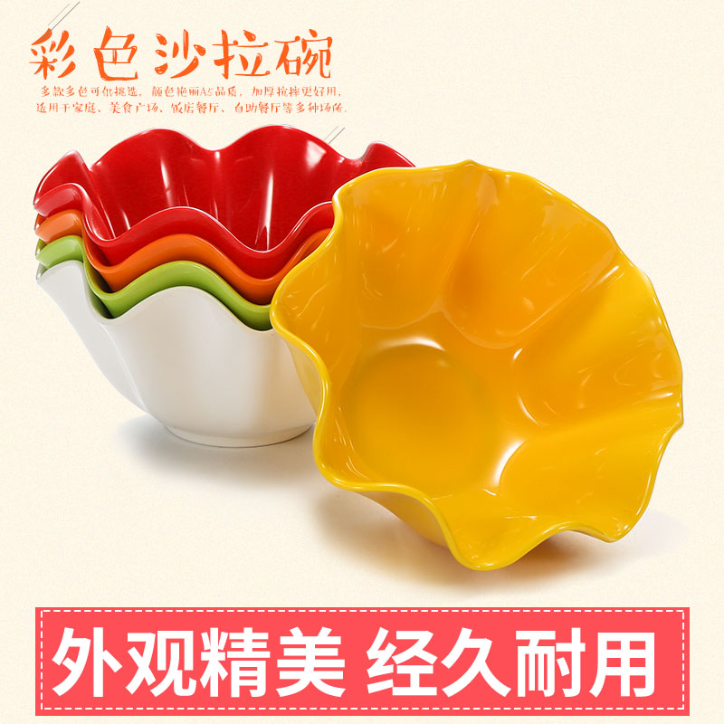 Coloured Melamine Fruit Salad Bowl Plastic Imitation Porcelain Commercial Creativity Rotary Small Fire Pot Shop Cutlery string Bowl Vegetable Bowl