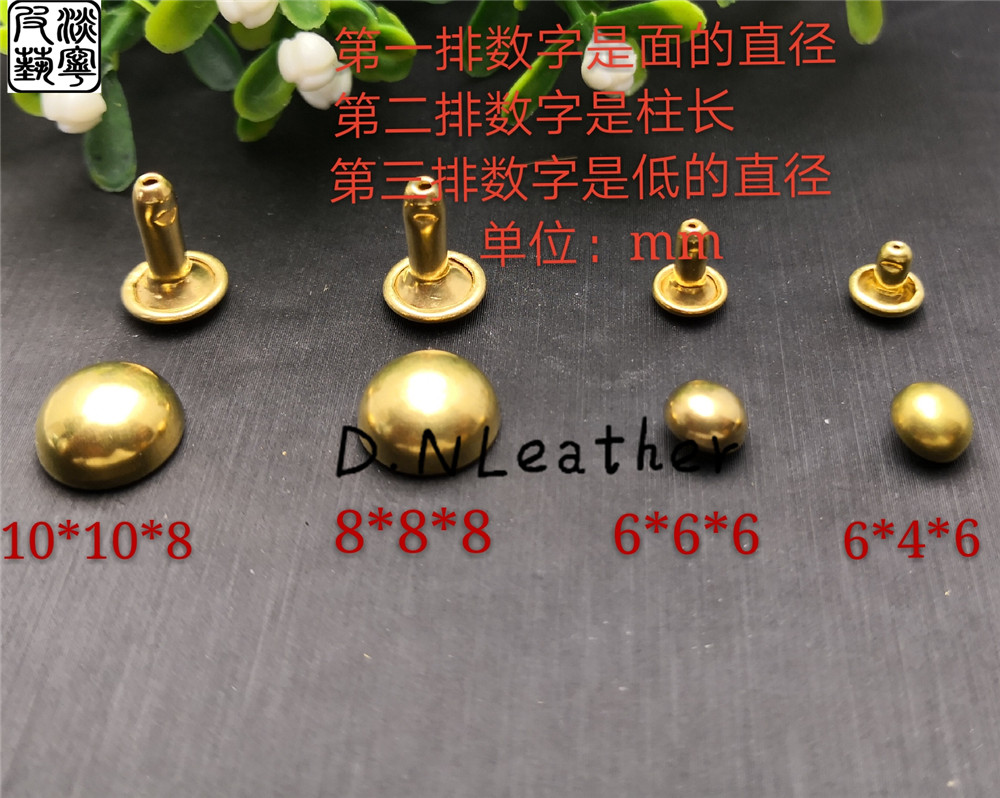 Pure Brass Flat Head Mushroom Bifacial Rivets Pure Copper 6 8 10mm Liuding Ram Leather Leather Bags DIY Fit