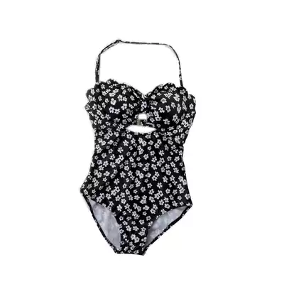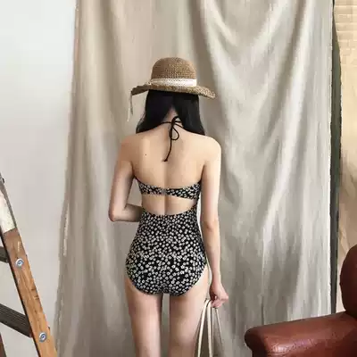 Korean triangle one-piece floral slim waist simple bow high waist conservative swimsuit female hot spring vacation