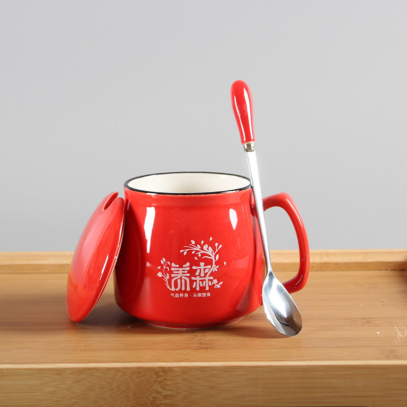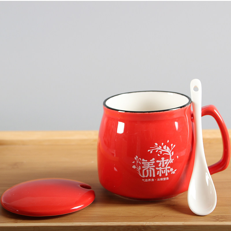 Beilif slim slim body raising cup Creative ceramic mug with lid spoon advertising cup custom logo