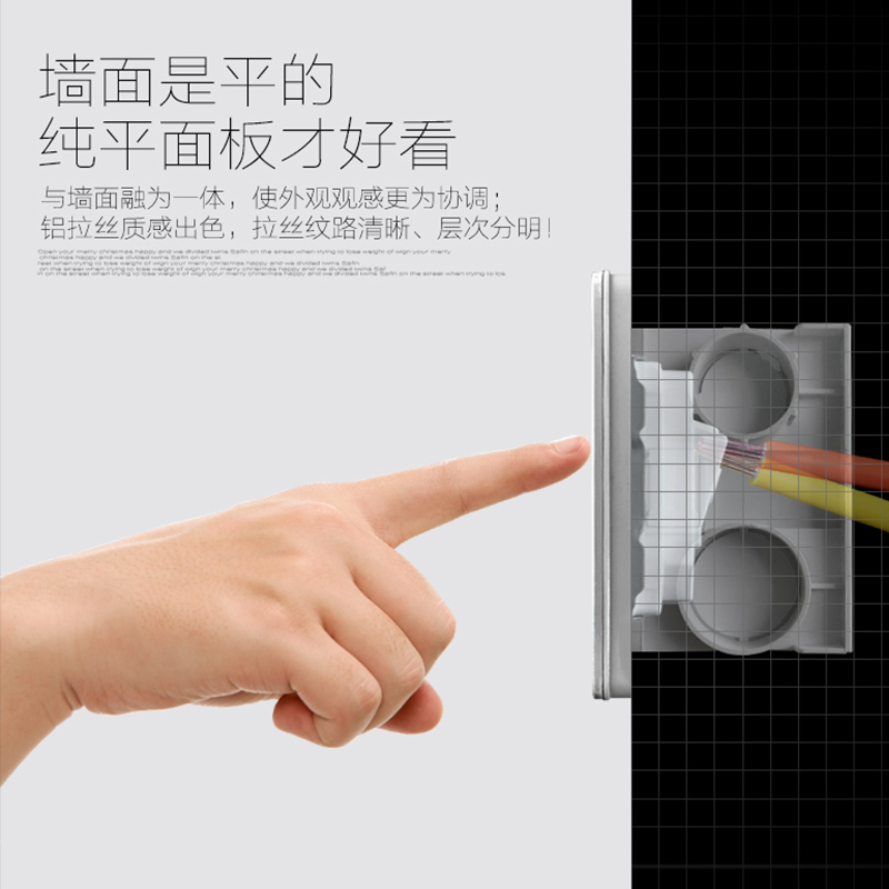 Kavis 86 type dislocation five-hole socket panel household wall stainless steel power socket two or three plug black