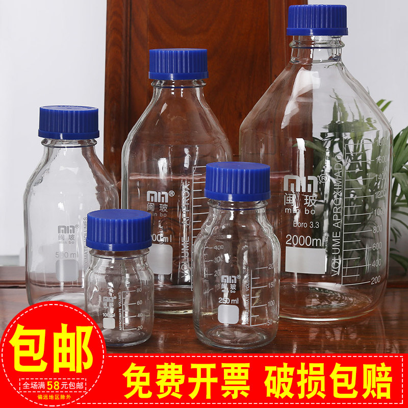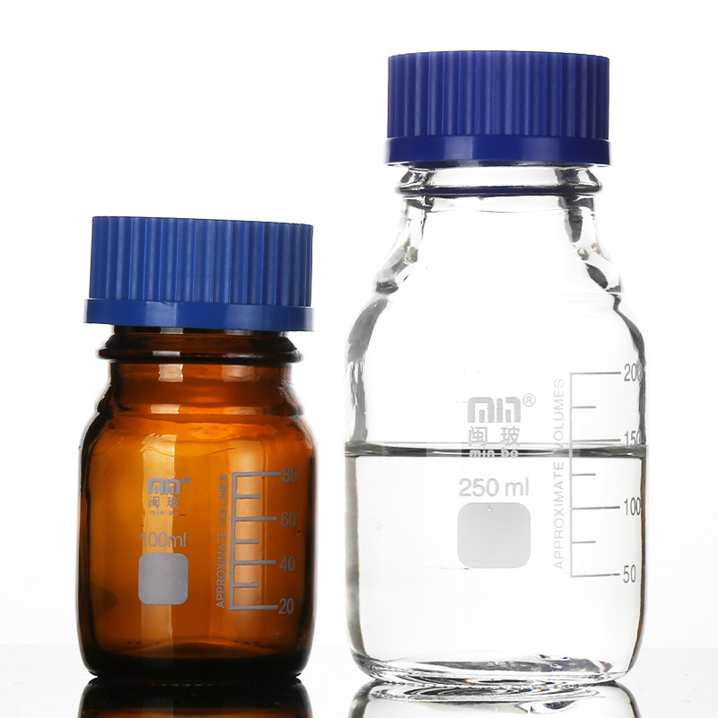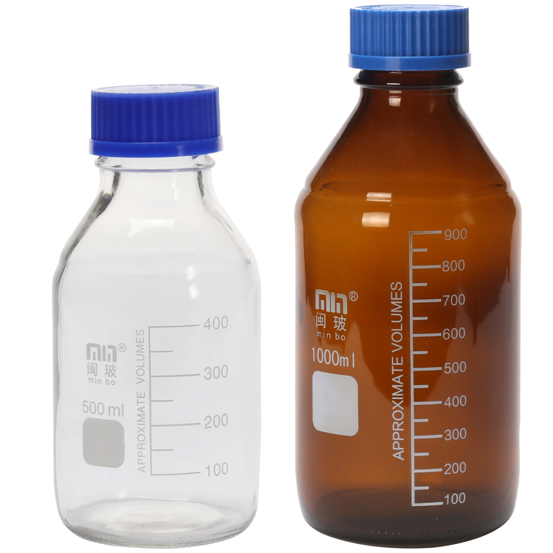 Blue Cover Silk Mouth Reagent Bottle 1000ml Laboratory Transparent Spirolet Blue Lid Bottle Brown Flow Phase Glass Reagent Bottle