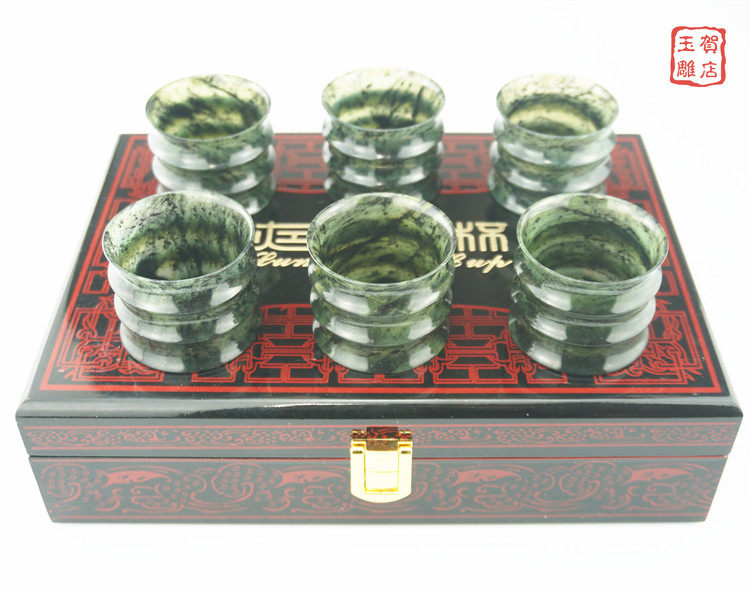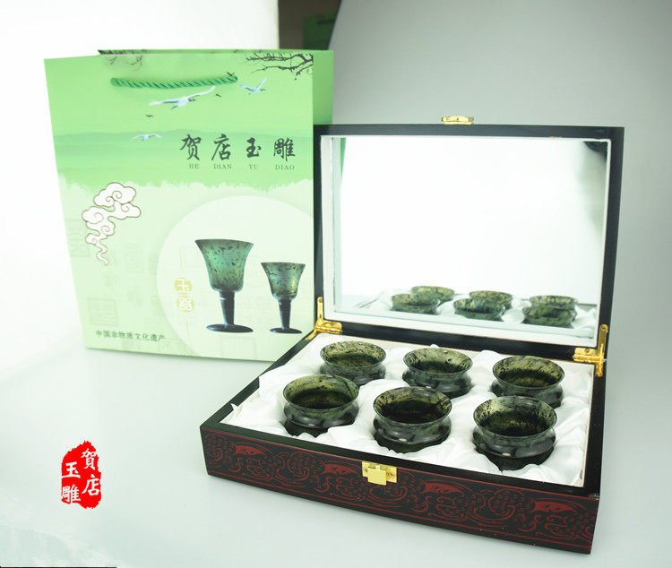 Jiuquan luminous cup Qilian jade luminous cup Wushan Mandarin duck jade Gansu Hedian jade carving goblet wine glass ink jade pot