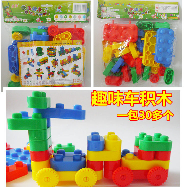 Kindergarten Large Grain Parquet Building Blocks Fun Car Assembled Building Blocks 350 gr Bagged Plastic Early Education Puzzle Toys