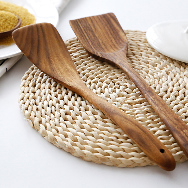 Thai Teak Wood No Lacquered Solid Wood Pan Shovel Rice Spoon Kitchen Fried Vegetable In stock Soup Wooden Spoon Wood Spade with a spoonful of small leaves Siding