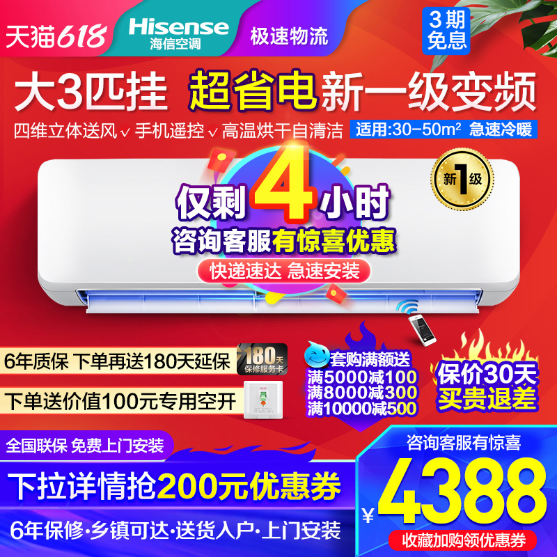 3 air conditioners wall-mounted cold air sea letter level energy efficiency frequency conversion energy saving and energy saving cold and warm living room large three-3p intelligent wall-mounted