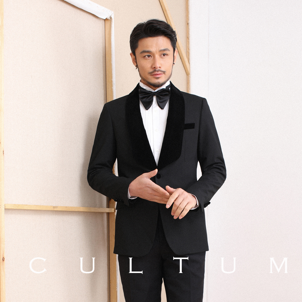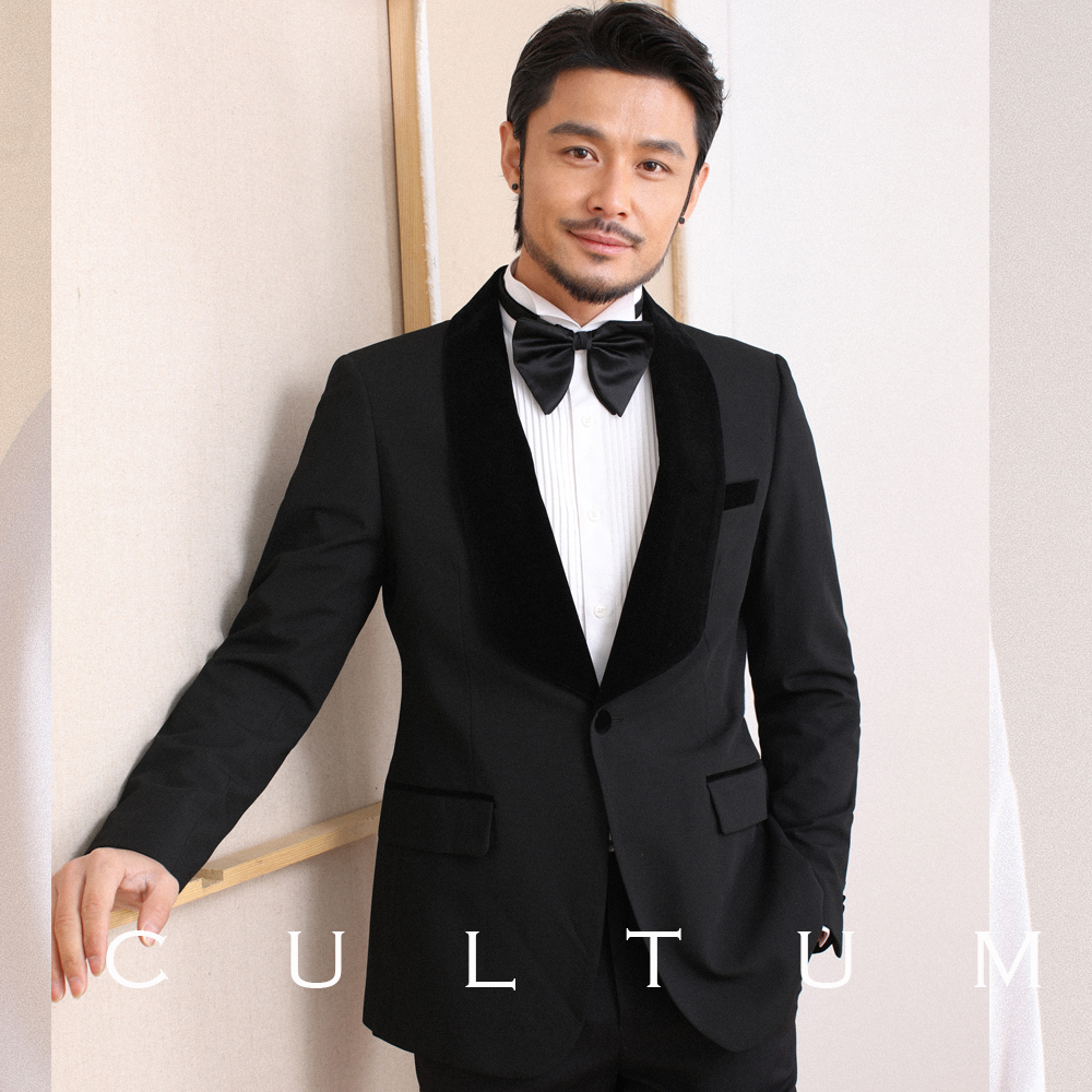 Korean version of gold velvet single-breasted slim male wedding banquet wedding groom suit suit dress male large size black