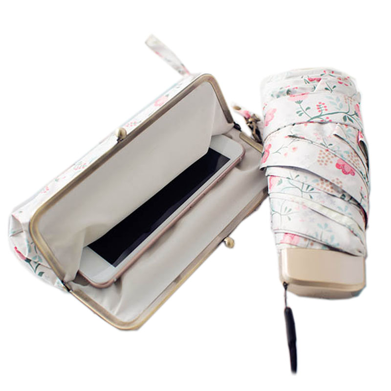 German small and clear new umbrella Mori family retro broken flowers 5-fold beach umbrella sunscreen anti-UV sunshade umbrella female