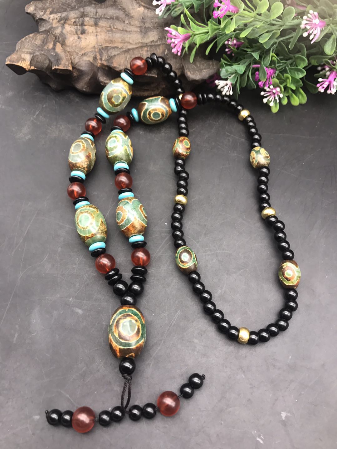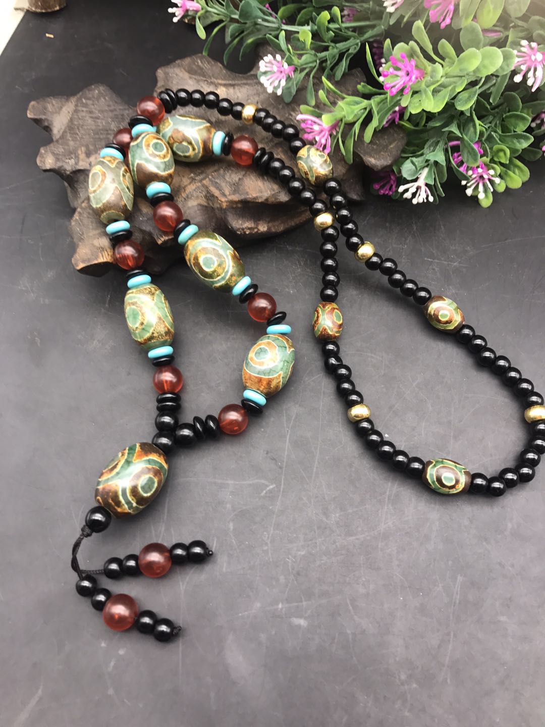 Tibet Natural Genuine Goods Nine Eyes Three Eyes Old Sky Pearl Old Manau Jade Medullary Pearl Necklace Handmade of Genuine Products Pendant