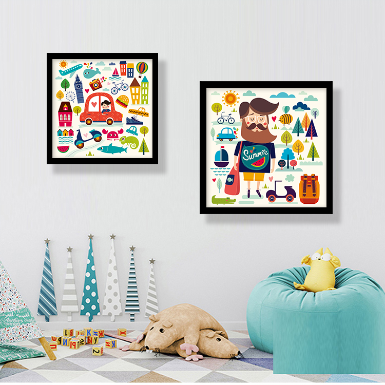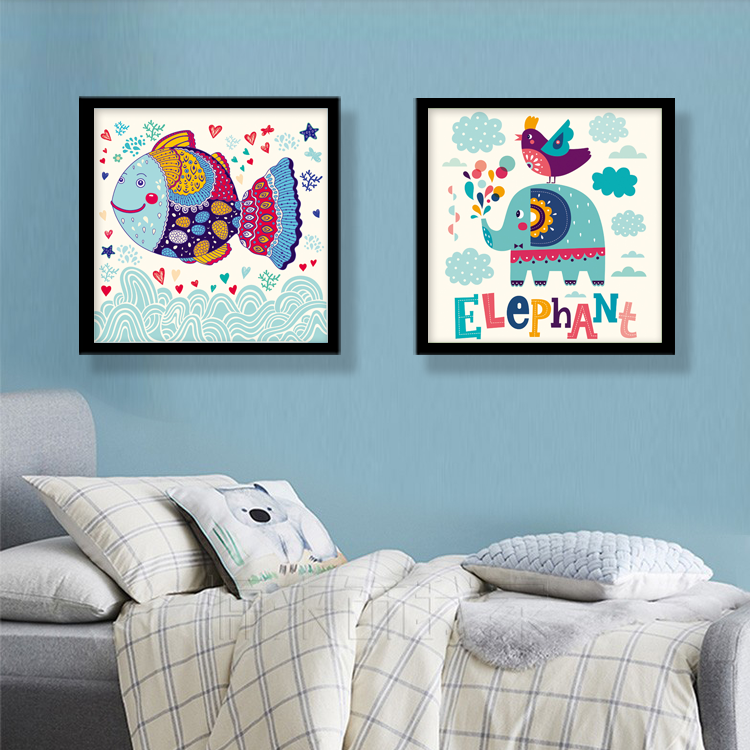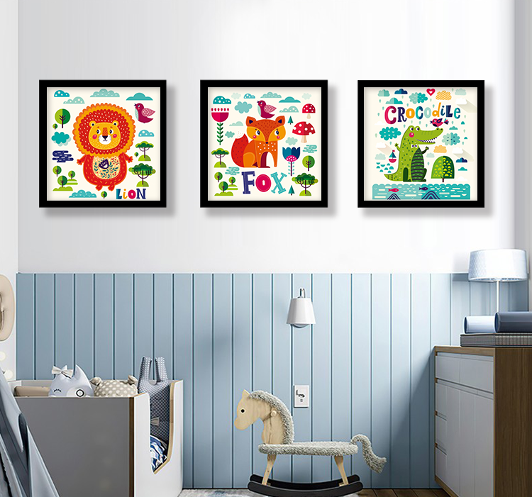Children's room decorated fairytale hand painted and painted boy girl's bedroom bed haircut through forest animal kindergarten fresco