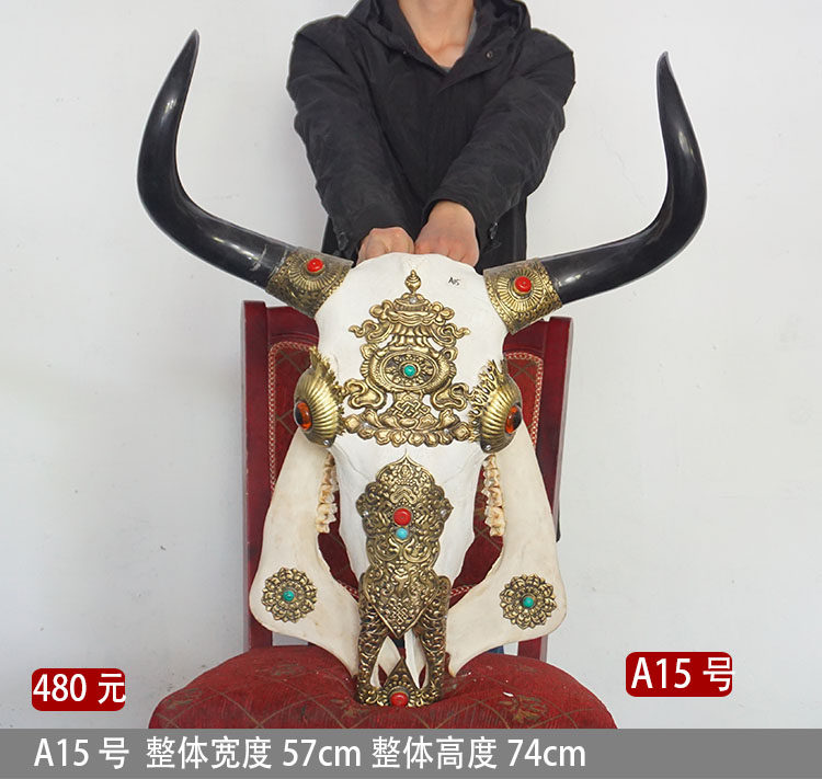 Hand-coated copper yak skull craft gift decoration Tibetan decorative cow head specimen wall hanging Storefront decorative cow head gift