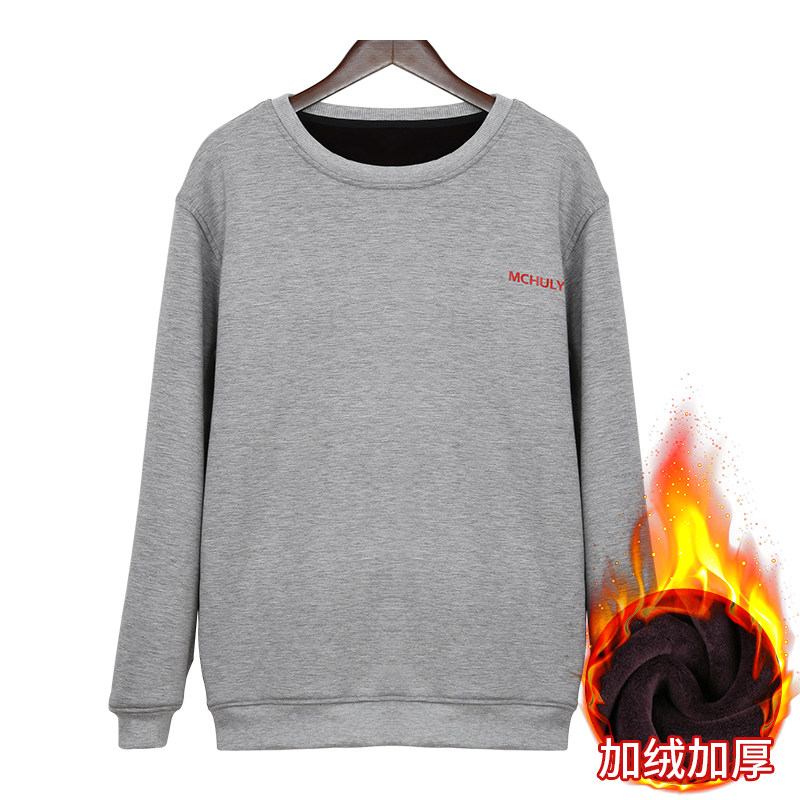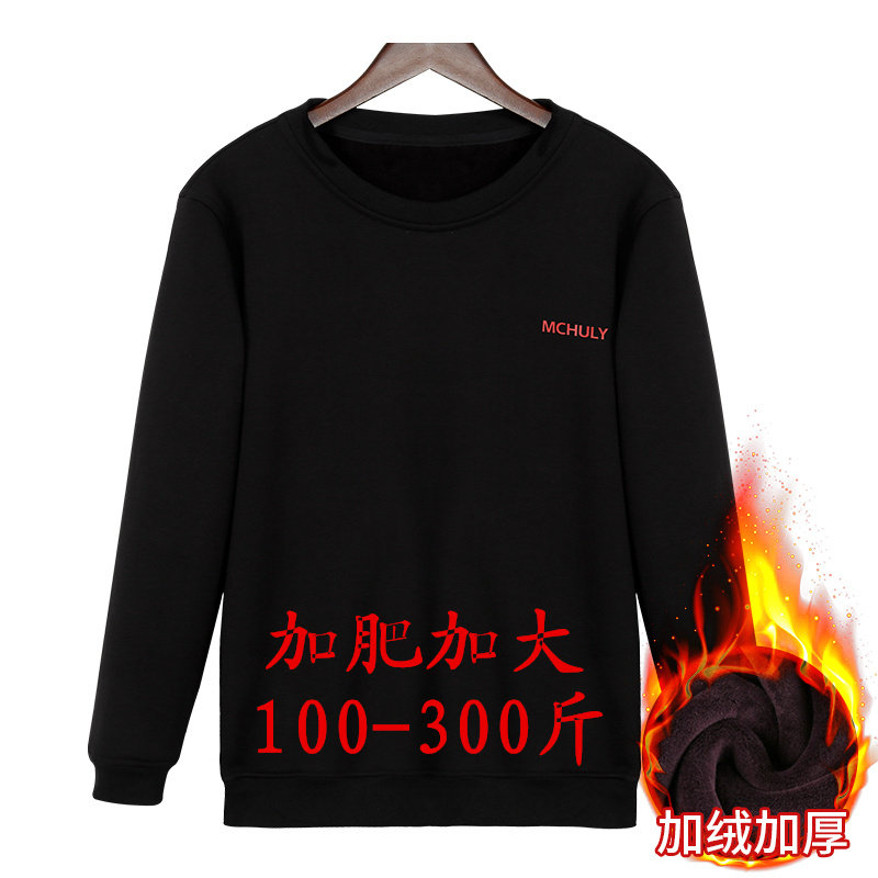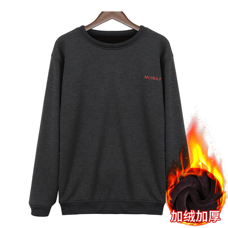 Autumn and winter men's plus size plus velvet pullover casual top cotton round neck long-sleeved top loose no cap thickened thick cotton T