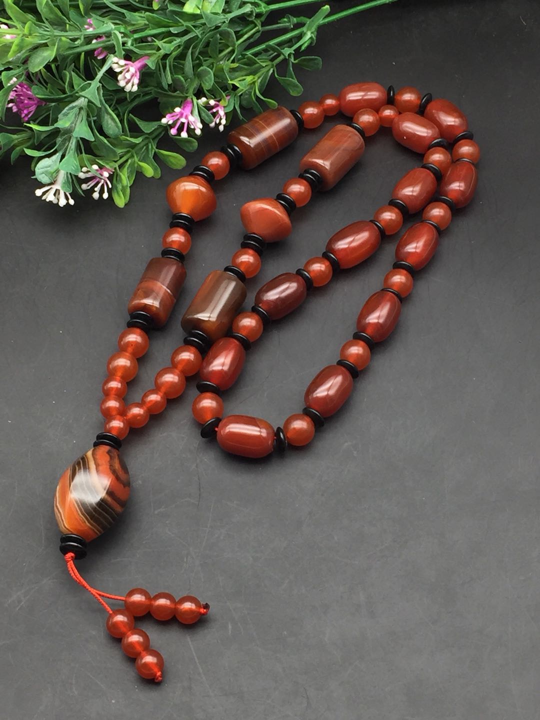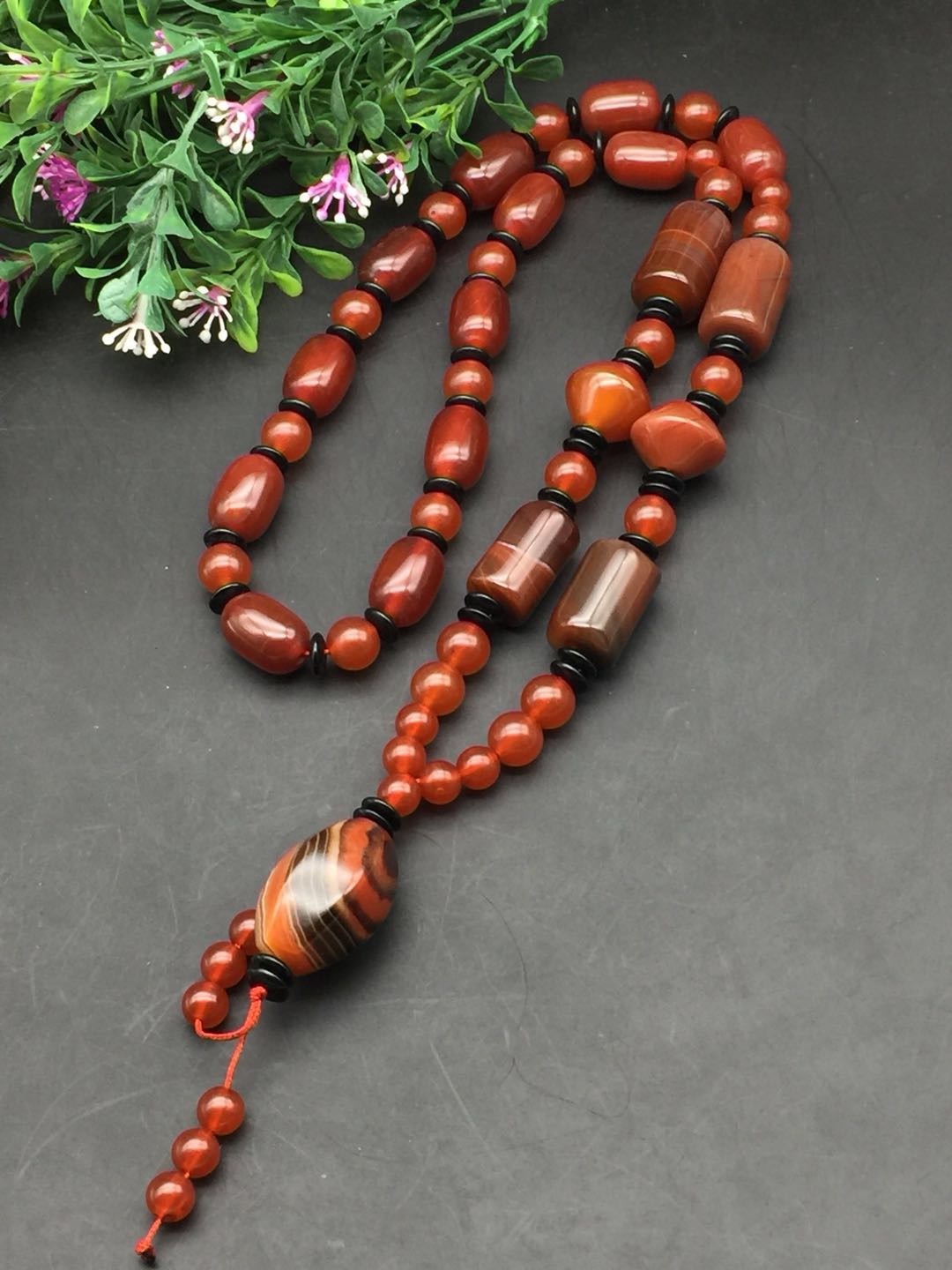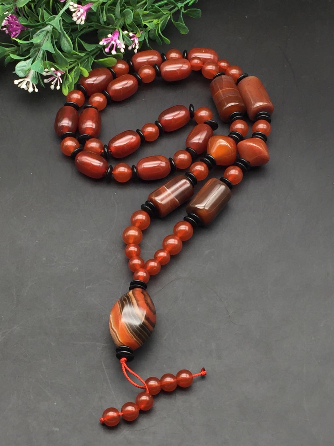 Natural Tibetan old dzi bead old agate chalcedony necklace three-eyed pendant nine-eyed dzi bead cinnabar genuine