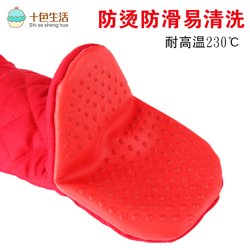 Oven gloves extended silicone insulation gloves High temperature thickened anti-scalding slip Microwave oven gloves heat-resistant 230 degrees