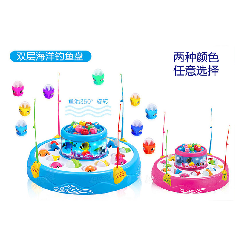 Children's electric fishing toy Music light rotating magnetic large fishing plate Kindergarten baby birthday gift