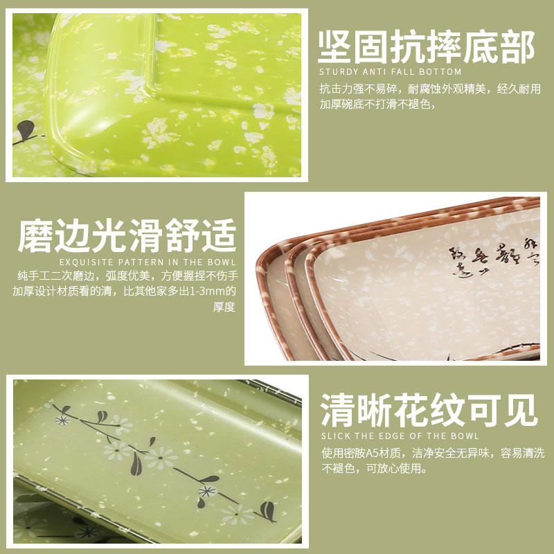 Melamine Lotus Flower Plastic Intestine Powder Plate Dish Rectangular Commercial Imitation Porcelain Hot Pot Tableware Small Plate Barbecue Plate
