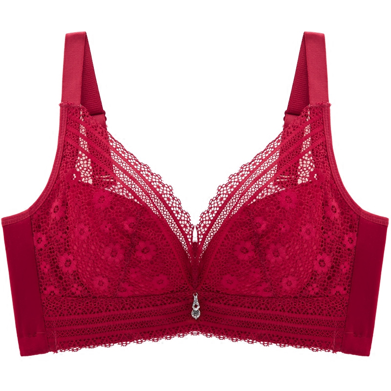 No rim women's underwear set Large chest small bra Ultra-thin section This life wedding bride large size bra red