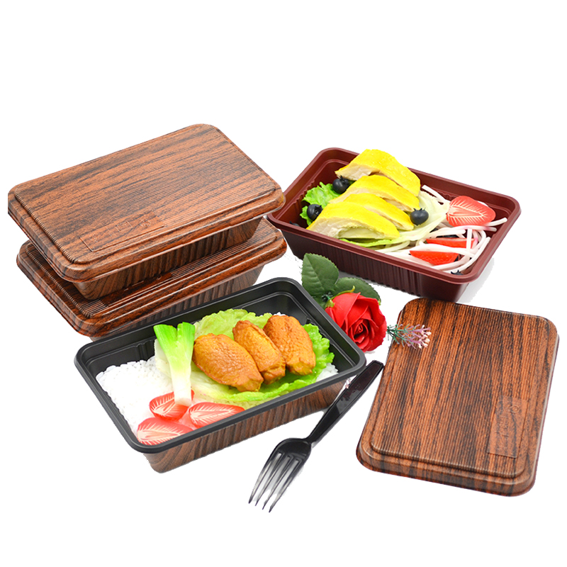 Disposable Dining Box Upscale Business Can Microwave Imitation Wood Grain Lunch Box Thickening Day Style With Lid Rectangular Packing Case