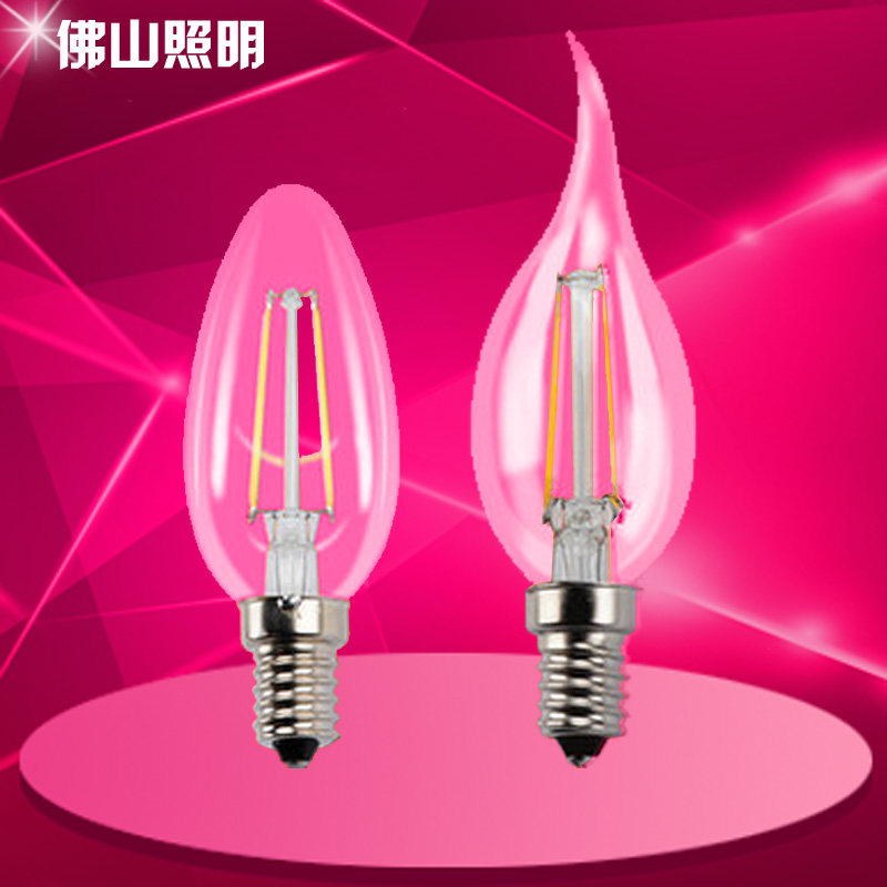 Foshan LED Foshan Lighting LED Filament Type Full-Week Light LED Bulb E14 Sharp Bubble Pull Tail Bubble Candle Bubble 2W4W