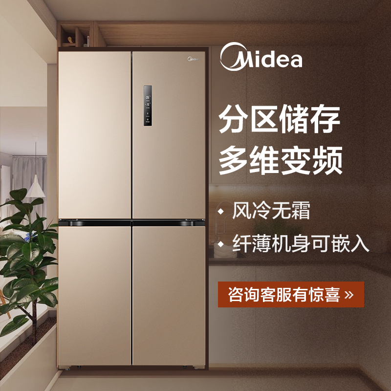 Midea refrigerator 468L household cross-door ultra-thin freezer four-door two-door smart home appliance refrigerator