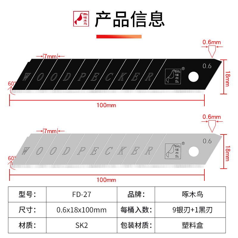 Woodpecker blade FD-27 large thickness 0 6 fine blade wallpaper blade blade - cutter blade - 18mm
