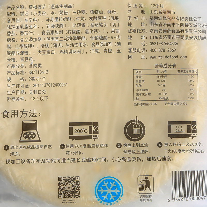 (Xin Vid Pizza Cake 9 Inch) frozen semi-finished cheese wire drawing pizza embryocommercial baked raw material