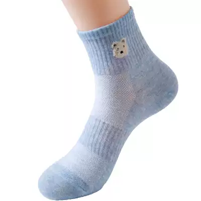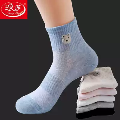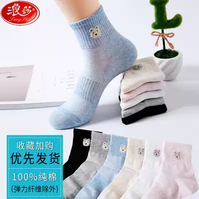 Langsha socks women's mid-tube socks ins tide pure cotton thin mesh summer sports socks Korean version of Japanese cute spring and autumn
