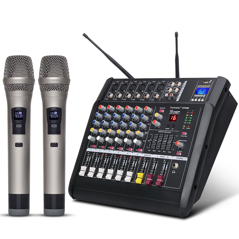 With power amplifier mixer All 6-way with 350W power amplifier one-to-two wireless microphone performance synthesis All