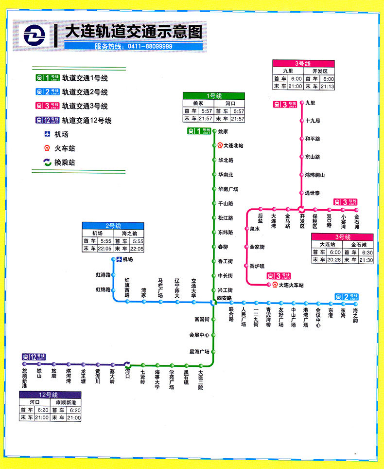 (send bus manual) 2020 New version Dalian City Tourist Traffic Map CITY with metro line HD waterproof version Dalian City Tourist Traffic Map Track Transportation Schematic Tourism