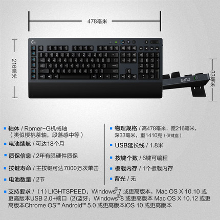 Logitech G613 Wireless Bluetooth Dual Mode Mechanical Keyboard Gaming Professional Gaming LOL CF Eating Chicken Jedi Survival Custom Macro Programming
