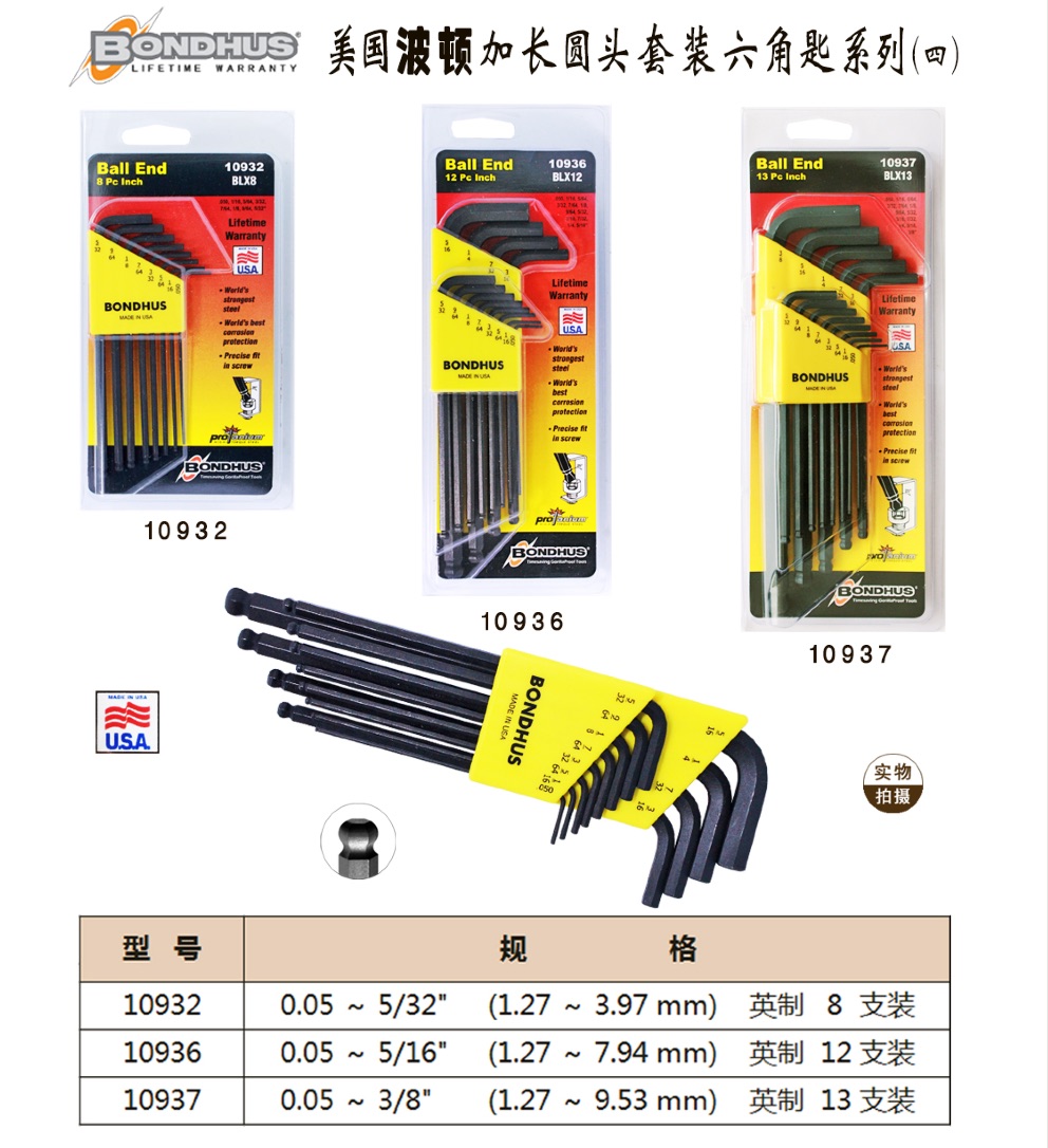 United States BONDUS Bolton Hexagonal wrench suit hexagonal 10946 10946 10999 10992 10937