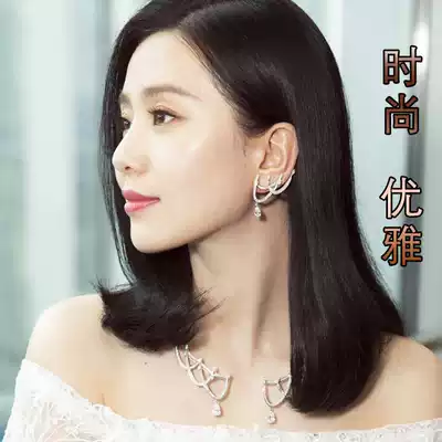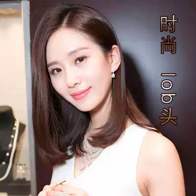 Wig female medium long clavicle hair delivery needle real hair silk lifelike natural Thin Buckle round face fashion short hair head cover