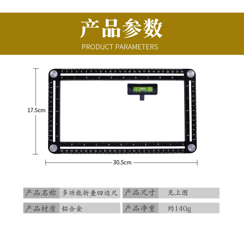 Multifunctional four-fold ruler aluminum alloy folding ruler building drawing measuring ruler plastic carpentry ruler irregular activity ruler