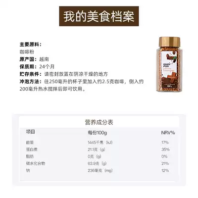 Mint healthy freeze-dried instant black coffee Vietnam imported coffee powder canned 0 fat 0 sucrose black coffee instant