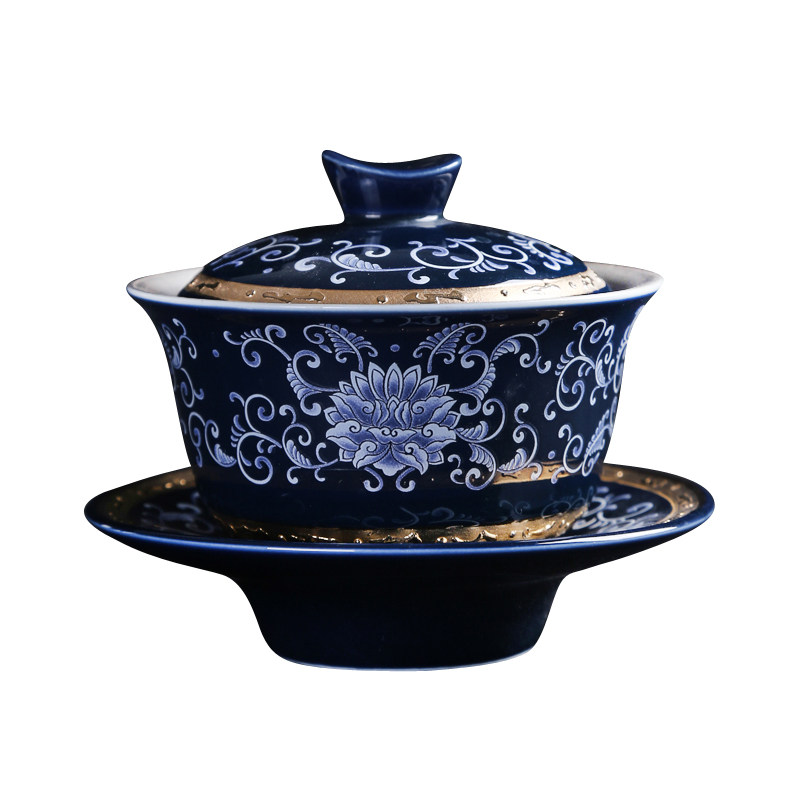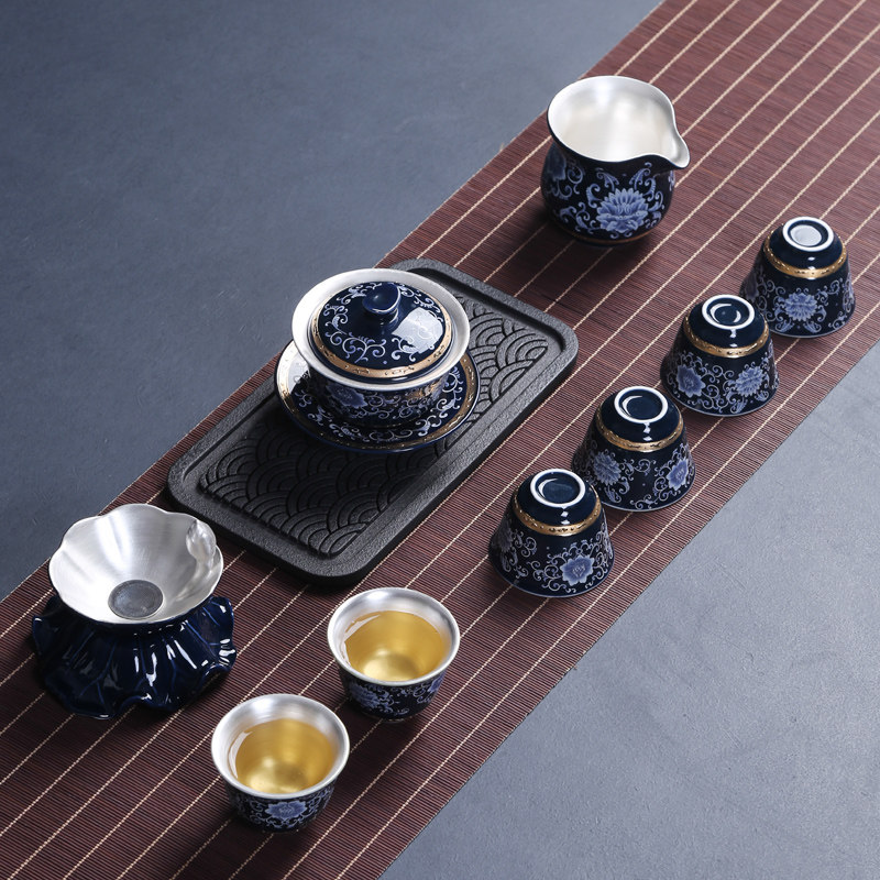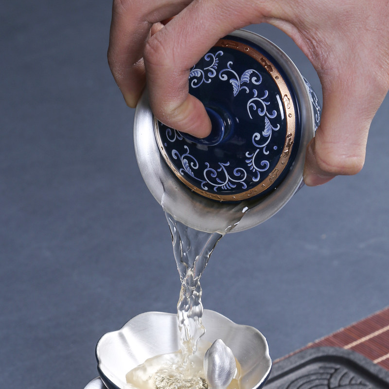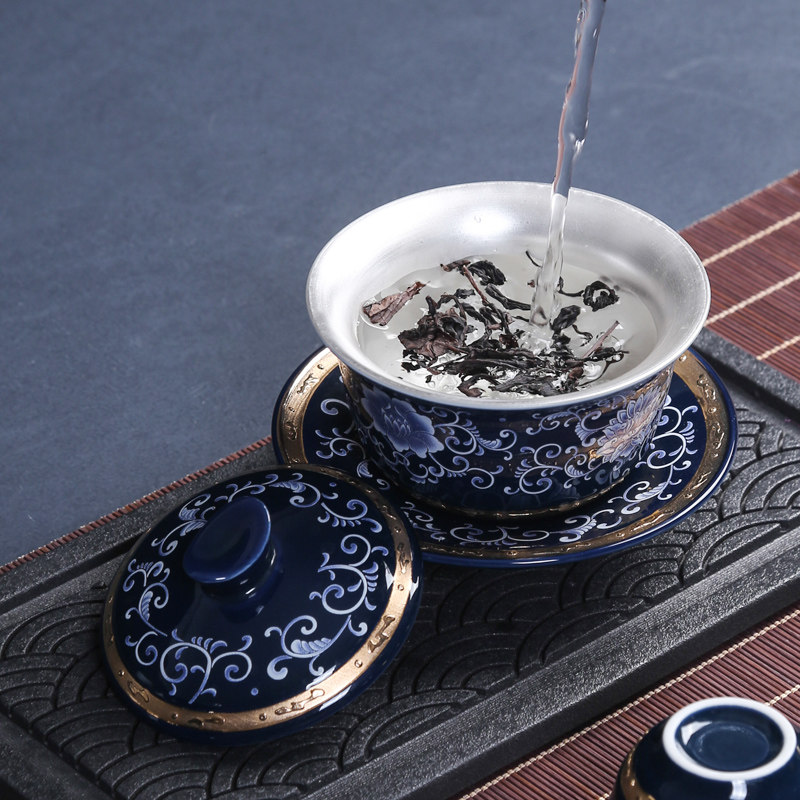 Pure silver 999 Jingdezhen ceramic pure manual silver enamel color silver cover bowl Kung Fu Three only cover the bowl tea cup big number