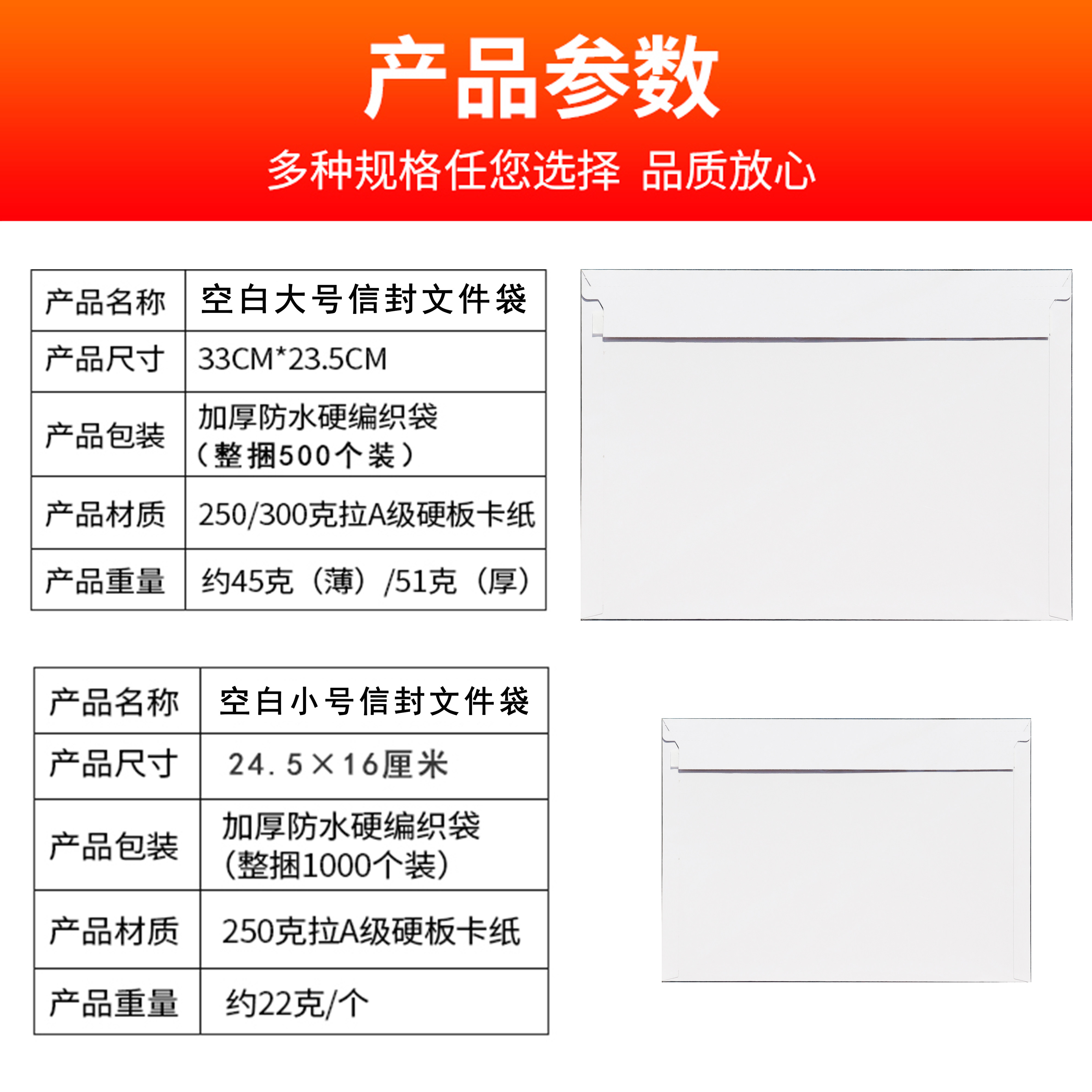 Thick Large Envelope (33×23 5cm) 51g Special Large Envelope (33×23 5cm) 30g Thin Large Envelope (33×23 5cm) 45g Extra Thick