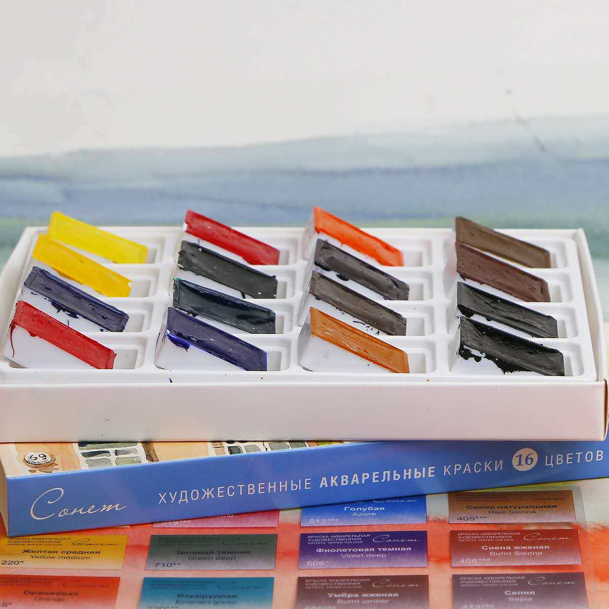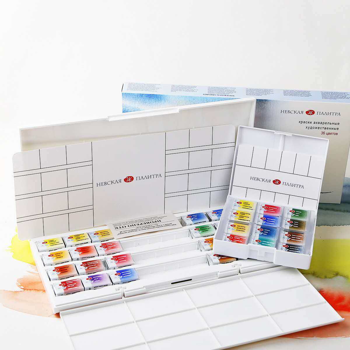 Russian white night student wear artist-grade 36-color solid watercolor paint 24-color plastic box carton