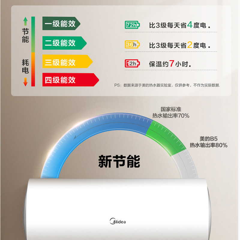 Midea electric water heater small volume quick heat 60 liters household dressing room 50L water storage type 80 smart home appliances 15WB5